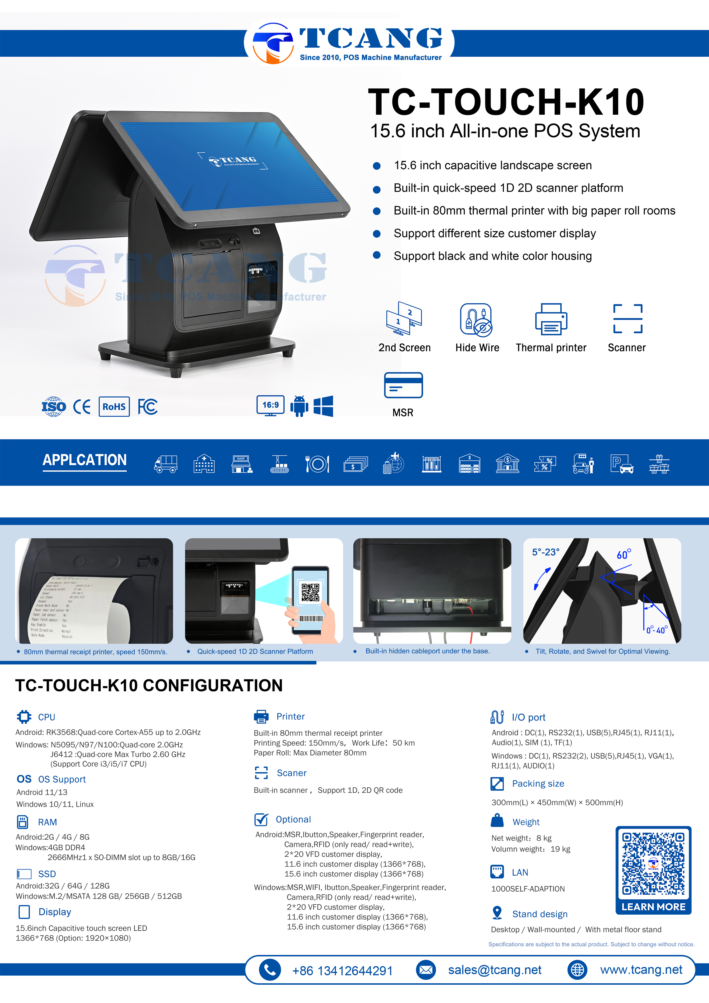 Keep your workspace clean and organized with our innovative cable-management base.This desktop POS terminal features a hidden wiring channel that neatly routes and conceals all cables, eliminating clutter and enhancing the overall look. ldeal for modern retail and service counters, it not only improves aesthetics but also prevents tangling and accidental disconnections-proving that smart design works