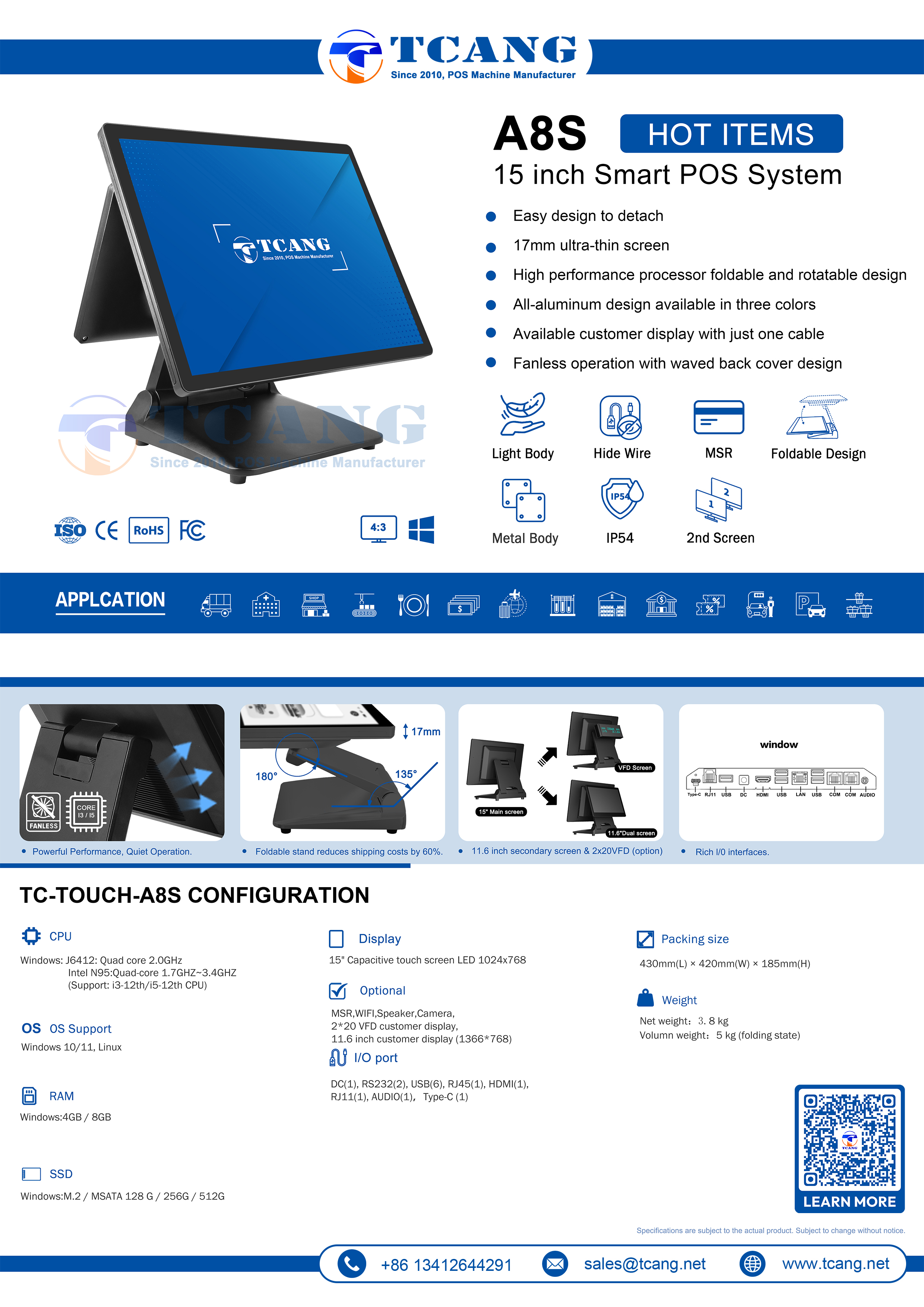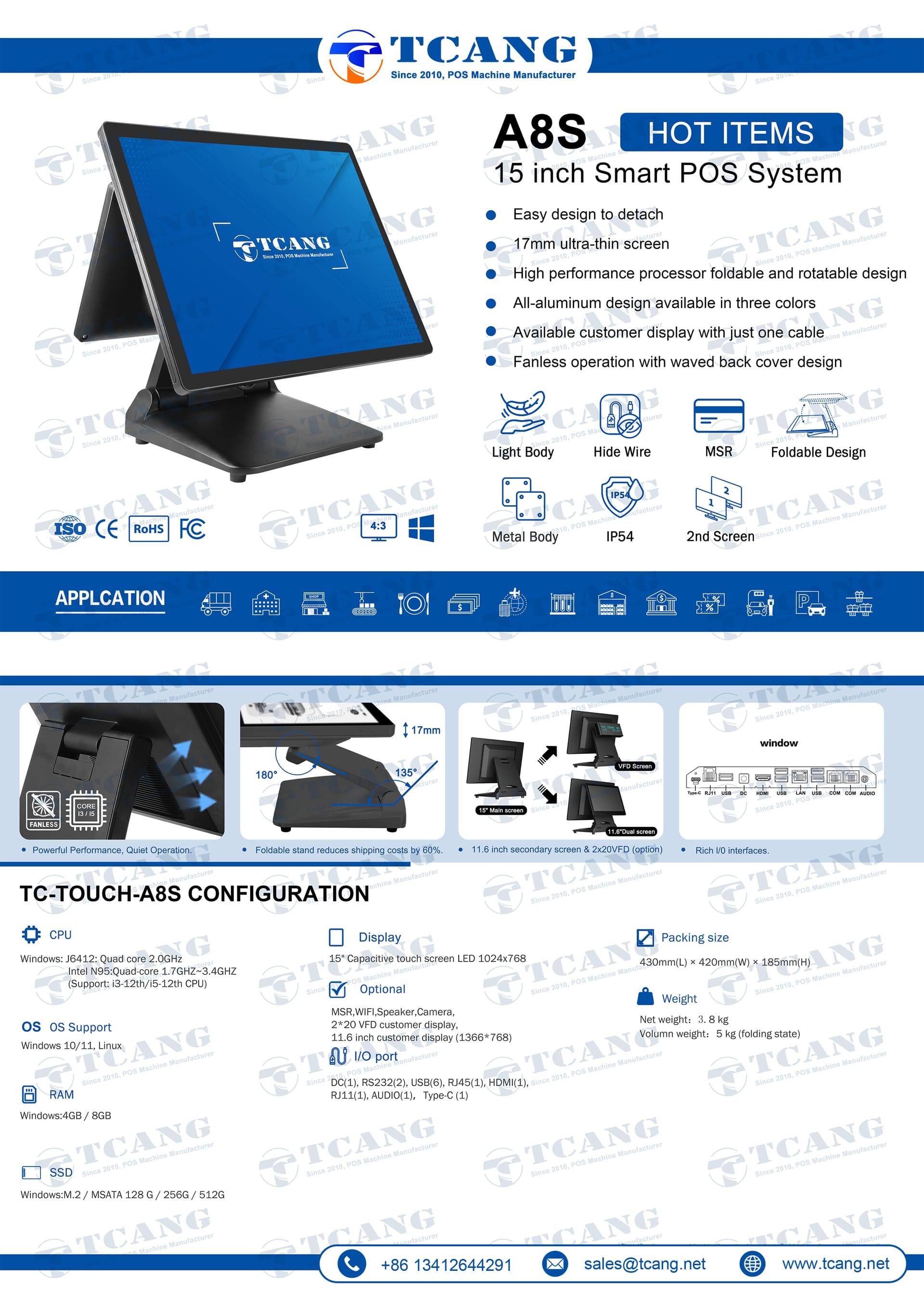 A8S POS Terminal stands out with its ultra-slim body—thinner than the iPhone 15—and a 7mm ultra-narrow bezel that maximizes screen space while maintaining a sleek, modern profile. Designed for elegance and efficiency, it delivers a premium user experience in a compact form.