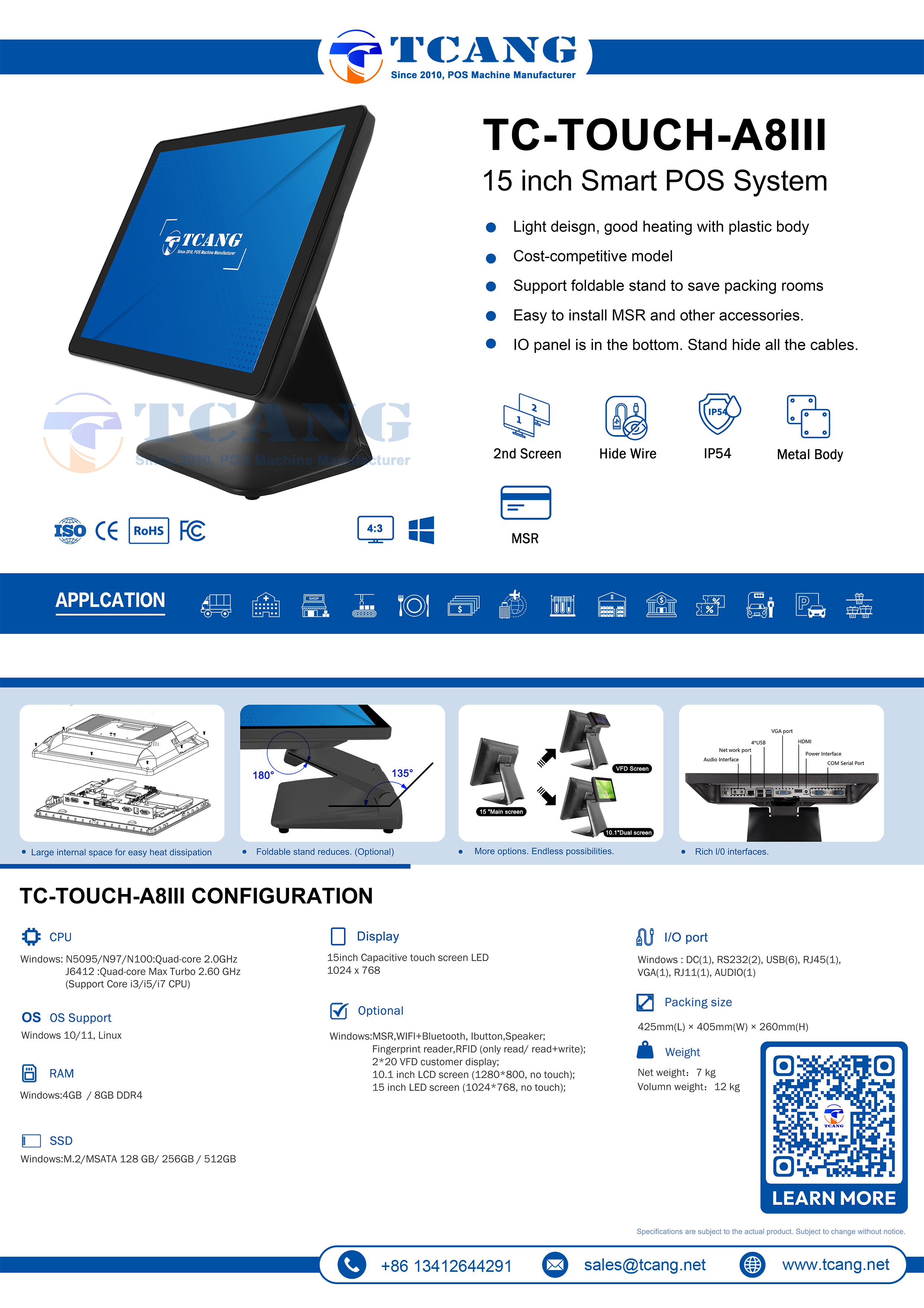 Maximize Efficiency with Superior Interfacing. Equipped with a full suite of I/O ports, the TC-TOUCH-A8III ensures limitless expansion possibilities. It supports instant connection to essential peripherals like scanners and printers, eliminating the need for external hubs. This plug-and-play architecture makes it the perfect adaptable solution for optimizing checkout speed in both retail and hospitality sectors.