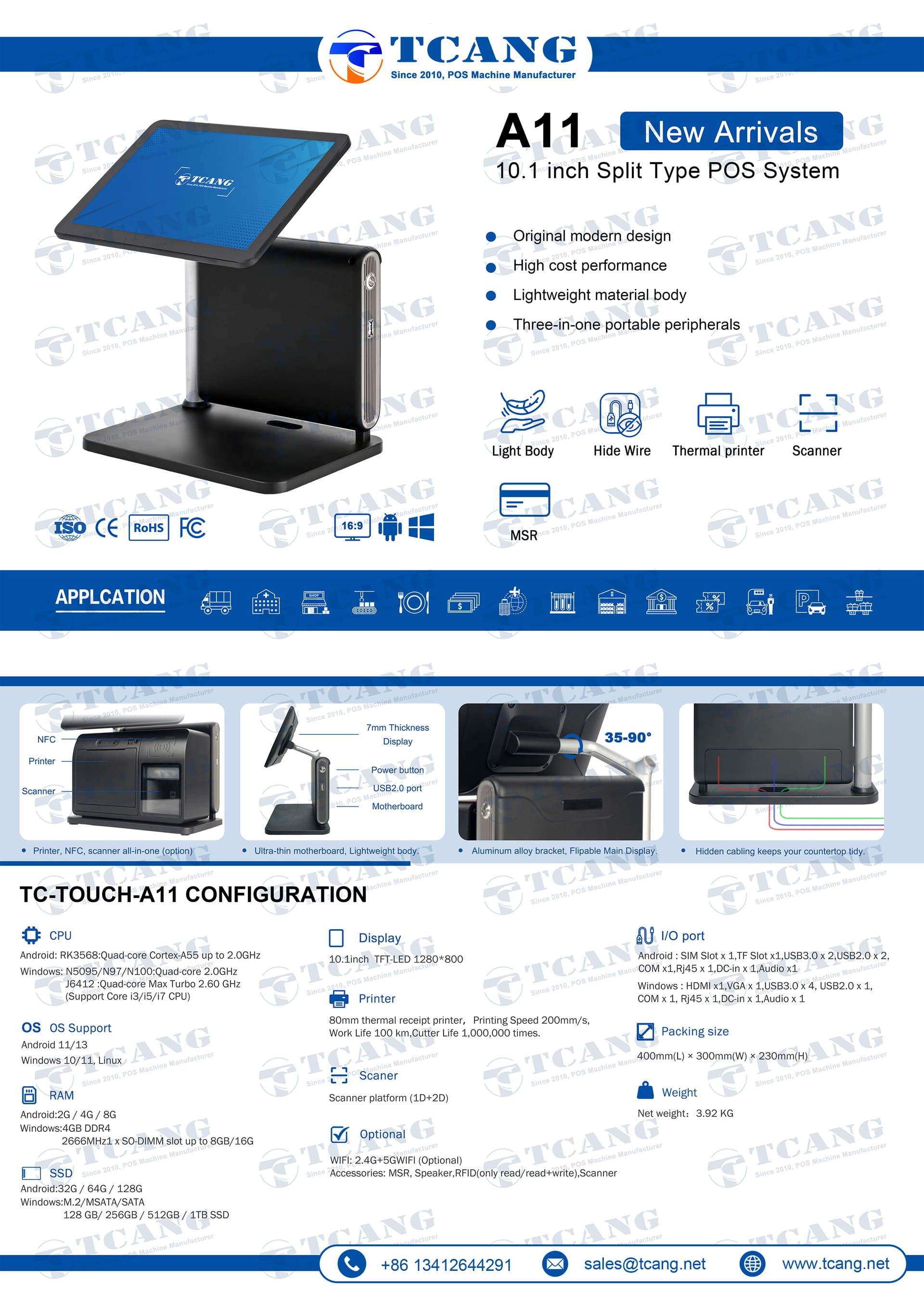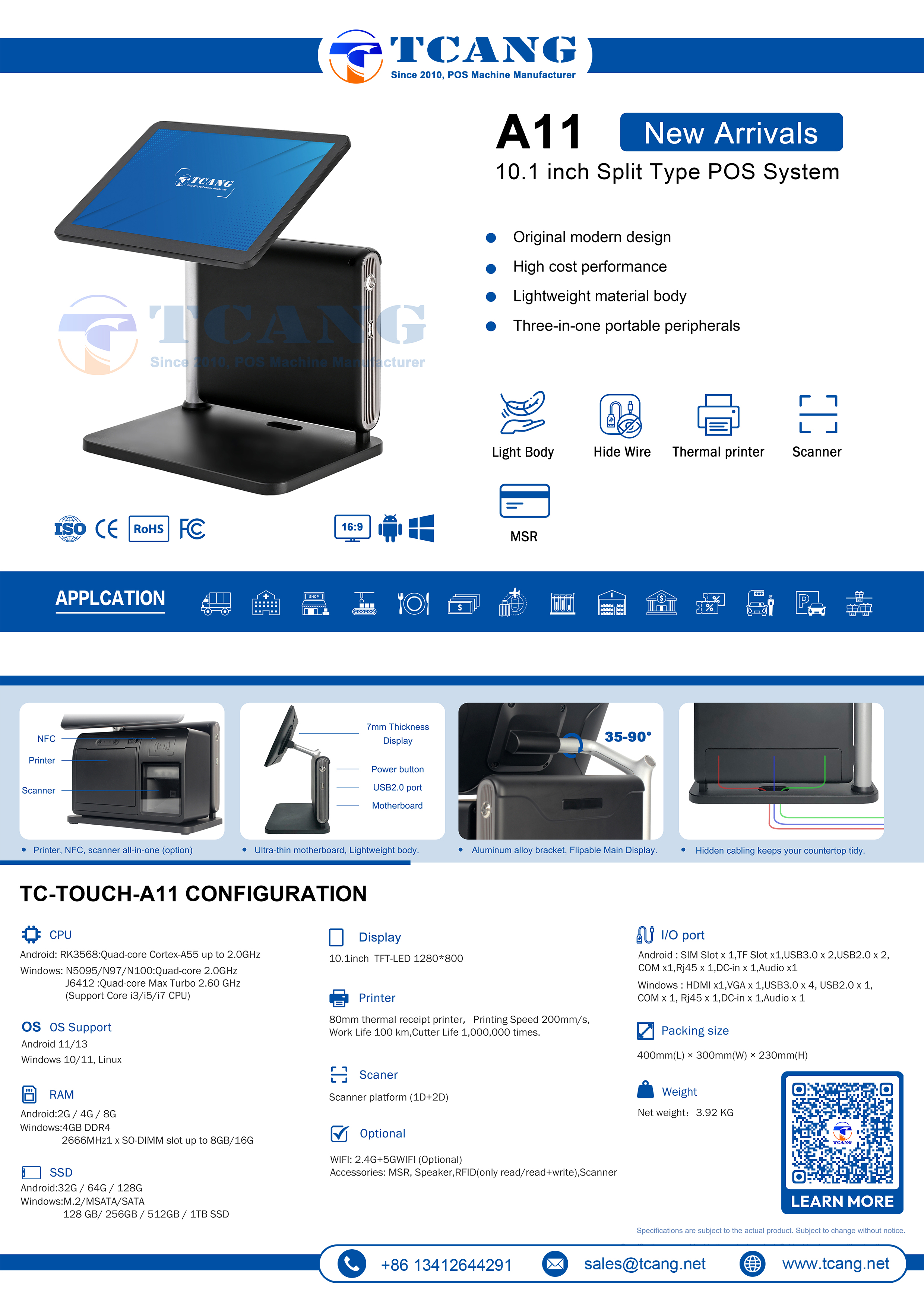 Equipped with advanced touch technology and a durable 10.1-inch screen, this POS terminal offers clear visibility in a compact form. The splash-proof front ensures smooth, reliable operation for daily business use.